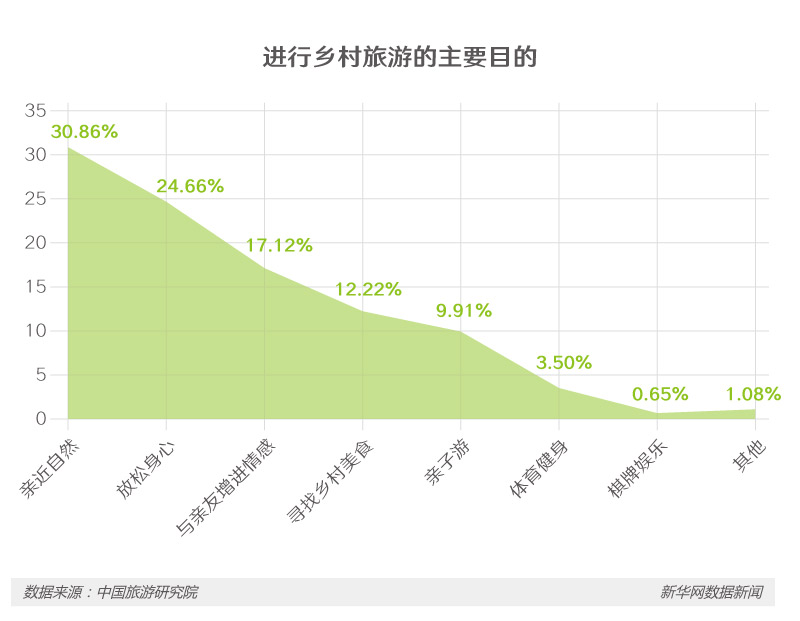 鄉(xiāng)村旅游的需求越來越大,很大程度上或許也與當(dāng)今社會(huì)快節(jié)奏的生活節(jié)奏相關(guān) ——在鋼筋水泥的“森林”中生活久了,人們往往就更加渴望追尋那種“久在樊籠里,復(fù)得返自然”的感受。根據(jù)相關(guān)調(diào)查結(jié)果顯示,近半數(shù)受訪者平均每個(gè)月會(huì)到鄉(xiāng)村地區(qū)旅游一次,且主要就是為了親近自然、放松身心。