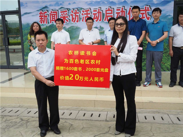 中國網/中國發展門戶網訊(記者 江萍)6月5日,由國家互聯網信息辦公室指導、中國互聯網新聞中心主辦的“鏡頭中的脫貧故事:走進百色”活動,在廣西壯族自治區百色市啟動。啟動儀式上,農橋網總經理王曉萍代表農橋讀書會,向百色市捐贈價值20萬元的1600套圖書和2000張光盤。