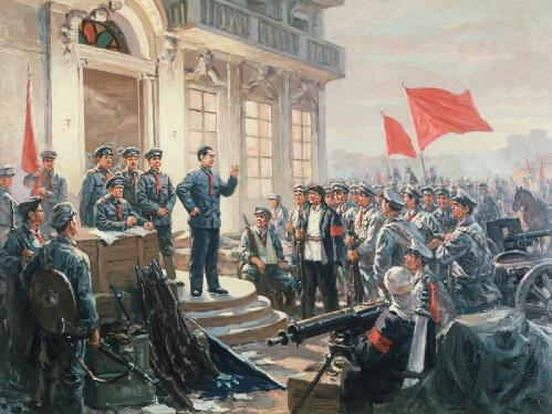 這是反映南昌起義的油畫。“我們團是我黨掌握的第一批革命武裝之一,更是軍旗升起的地方。”曾任“葉挺獨立團”政委的張東杰接受記者采訪時說。90年前,這個團參加的南昌起義,打響了武裝反抗國民黨反動派的第一槍,標志著中國共產黨獨立領導革命戰爭和創建革命軍隊的開始。新華社發