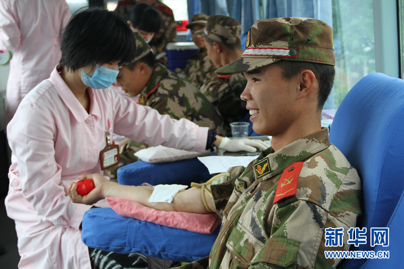2012年2月,中隊官兵正在進行無償獻血。新華網發(和平中隊供圖)