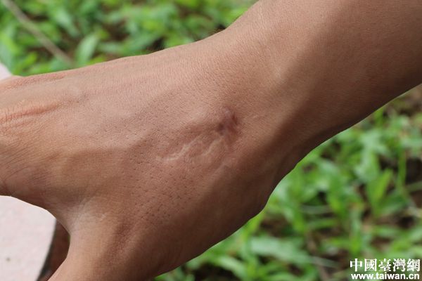 孔凡賓手腕上的傷疤。(中國臺灣網 尹賽楠 攝)