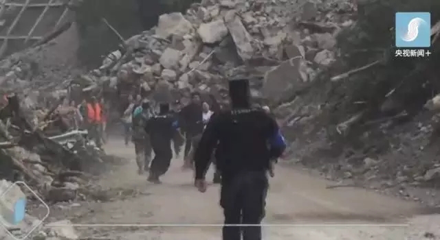 9日16時許,官兵們行至神仙池路口附近,遇見大批從震中撤離出來的群眾。突然,道路一側(cè)的山體開始晃動,揚塵卷著大小碎石從高處滾落,砸向驚恐的人群。