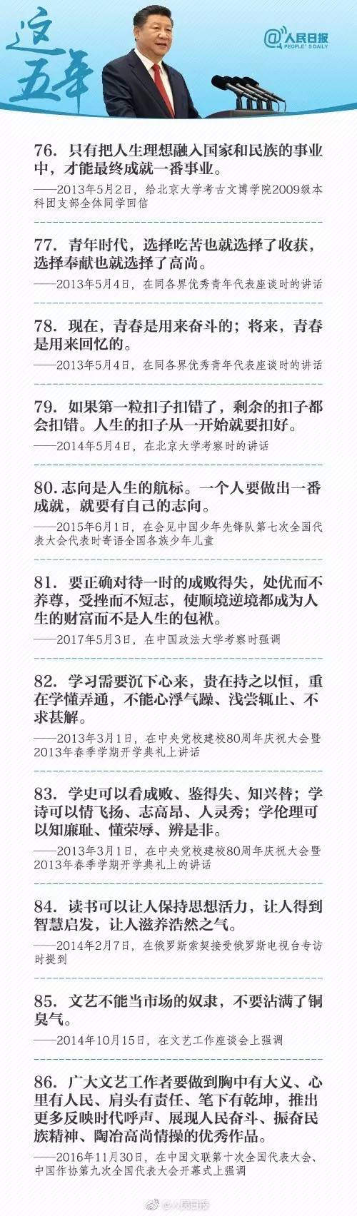 ①堅持“老虎”、“蒼蠅”一起打;②綠水青山就是金山銀山;③空談誤國,實干興邦;④人民對美好生活的向往,就是我們的奮斗目標;⑤確保部隊召之即來、來之能戰、戰之必勝…習近平治國理政100個金句,一起學起來!