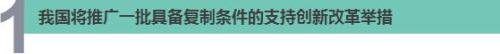8月30日的國務院常務會決定,將目前比較成熟、已具備復制推廣條件的若干項改革舉措在更大范圍內實施,絕大部分推向全國。主要包括更有針對性加大對中小微企業(yè)創(chuàng)新的支持,更大力度加強知識產權保護,允許高校和科研院所采取年薪制、協(xié)議工資制、項目工資等靈活多樣的形式引進高層次或緊缺人才,拓寬外籍人才工作居留向永久居留轉換渠道,實行國稅地稅聯(lián)合辦稅。