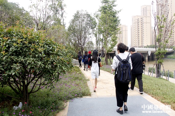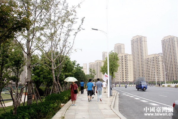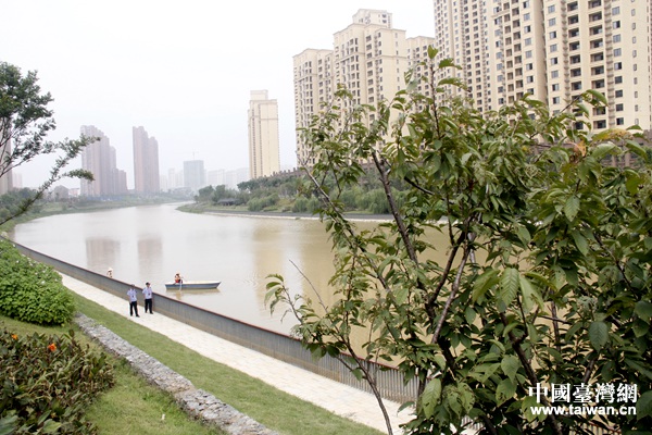 整改后河邊居民小區的高樓和整潔的路面。(中國臺灣網 李杰 攝)