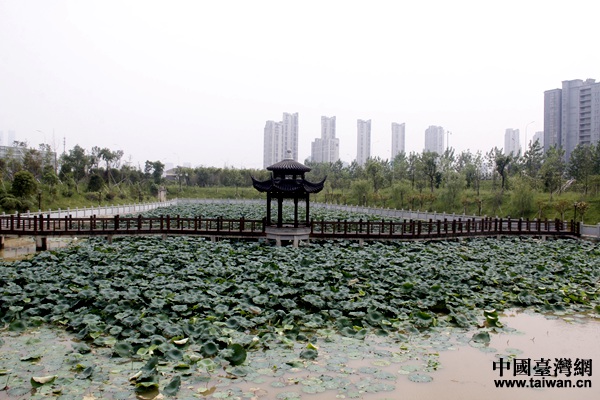 整改后烏沙河岸風景優美,涼亭和荷塘猶如公園一角。(中國臺灣網 李杰 攝)