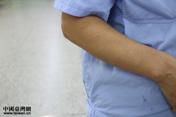 張國(guó)華的手臂在工作中留下了大大小小數(shù)不清的傷疤。(中國(guó)臺(tái)灣網(wǎng) 張麗媛 攝)