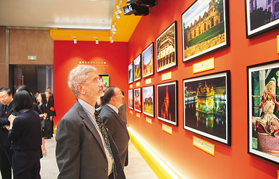 圖為金磚國家領(lǐng)導(dǎo)人廈門會晤期間,外國來賓在觀看金磚國家文化圖片展。