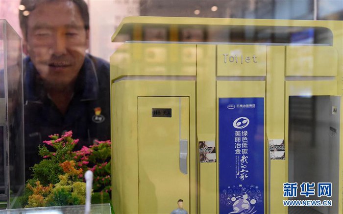 云南冶金昆明重工有限公司首席技師耿家盛在他帶隊研發(fā)的生態(tài)環(huán)保廁所的模型前(9月22日攝)。新華社記者 藺以光 攝