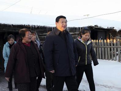 2014年1月26日,習近平冒著零下30多度的嚴寒,來到地處邊陲的內蒙古阿爾山市伊爾施鎮看望生活在林業棚戶區的群眾。