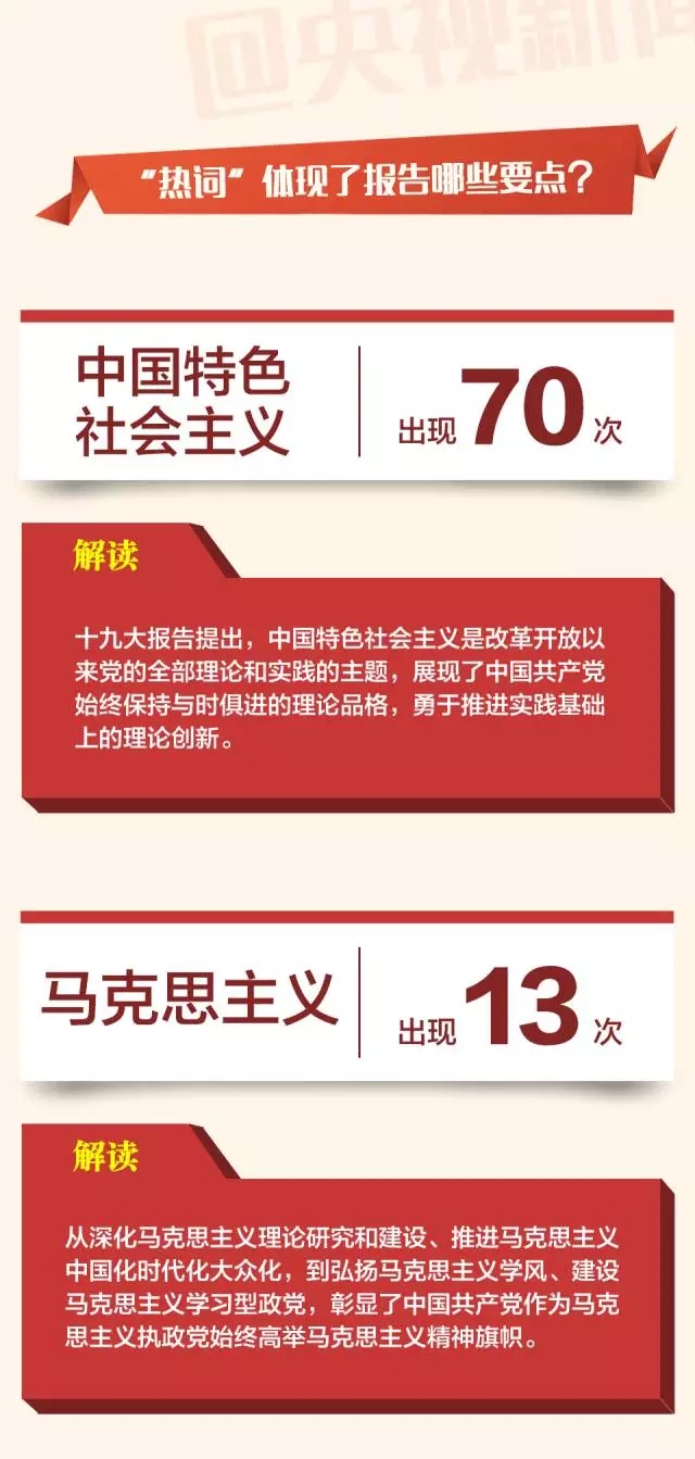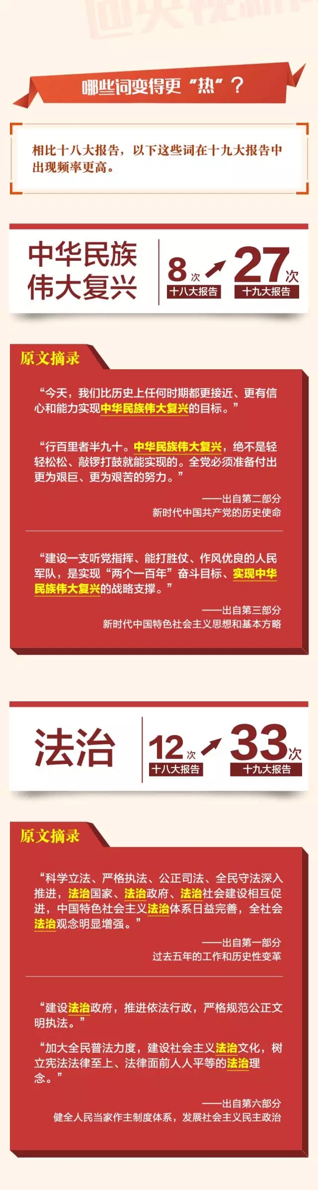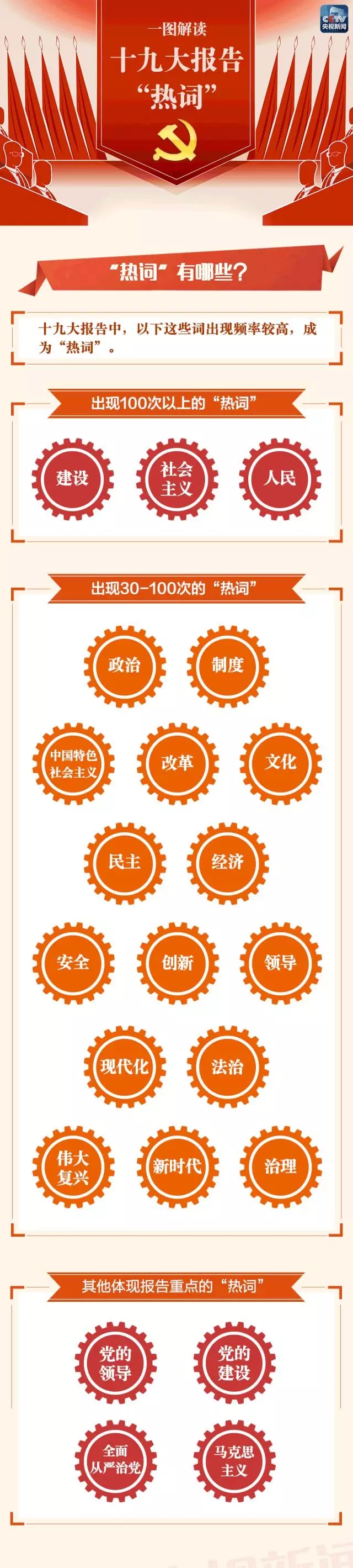 報告中哪些詞最“熱”,哪些詞預(yù)示了未來的發(fā)展方向?相比十八大報告,本次報告又有哪些全新的關(guān)鍵詞?問題的答案盡在圖中↓↓↓