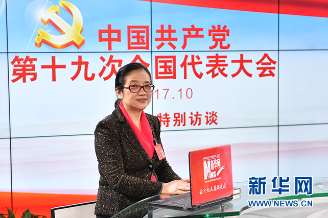 圖為十九大代表、中國書法家協會副主席、江蘇省書法家協會主席孫曉云做客新華網十九大特別訪談現場。新華網 郭小天 攝