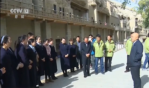 來自甘肅的十九大代表王旭東回到敦煌后,在莫高窟文物保護研究一線,為工作人員宣講十九大精神,分享心得體會。十九大報告中關于文化自信的內容讓大家很有共鳴。