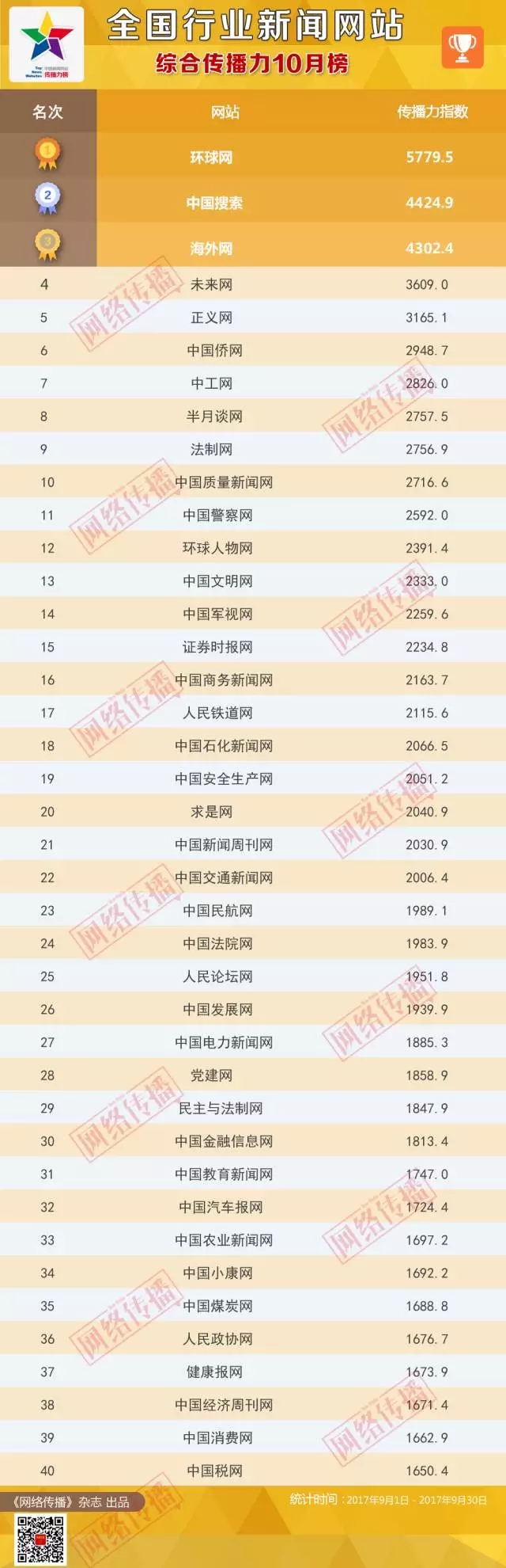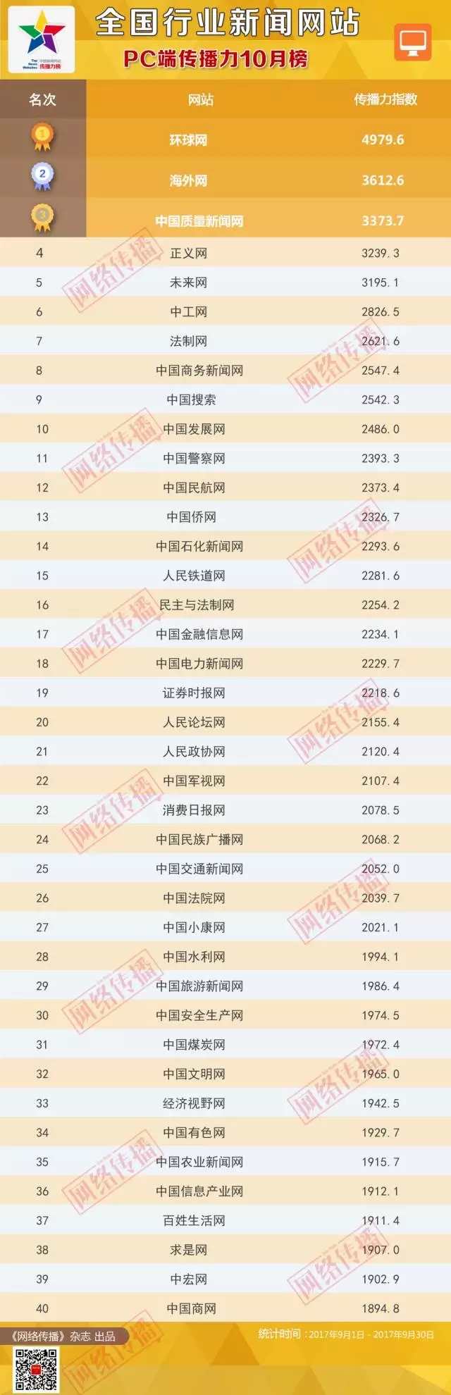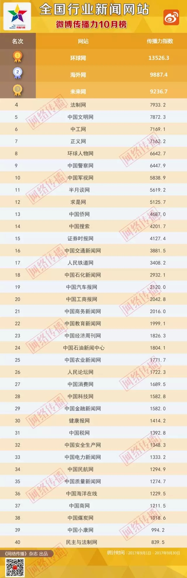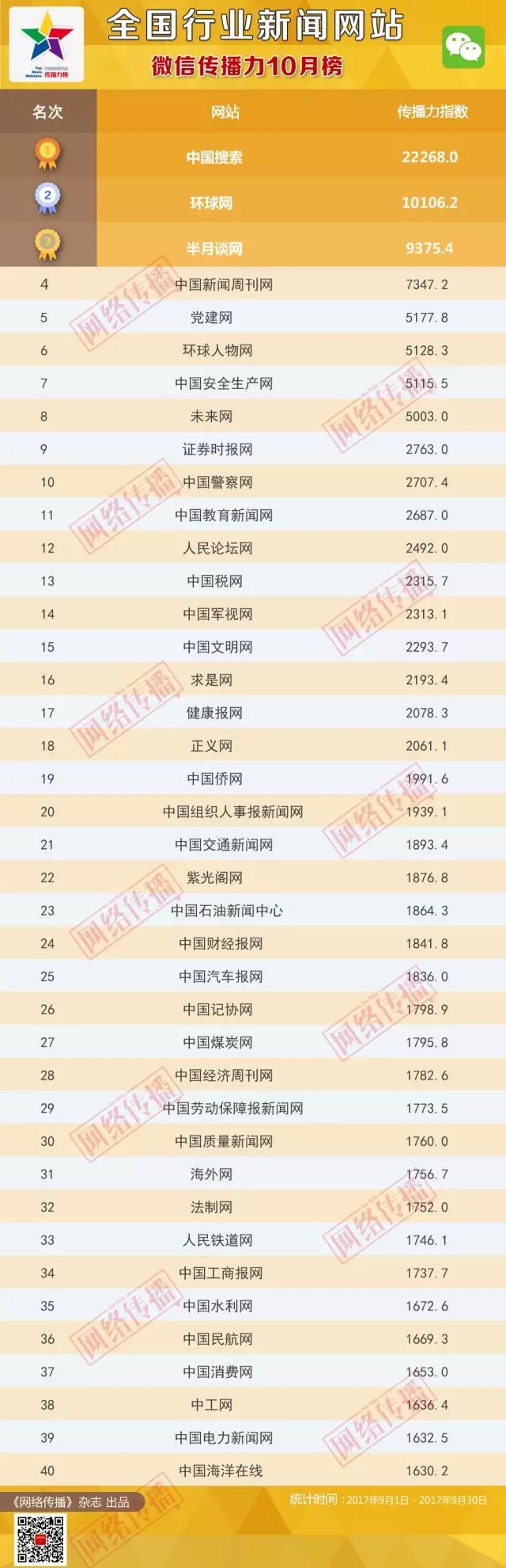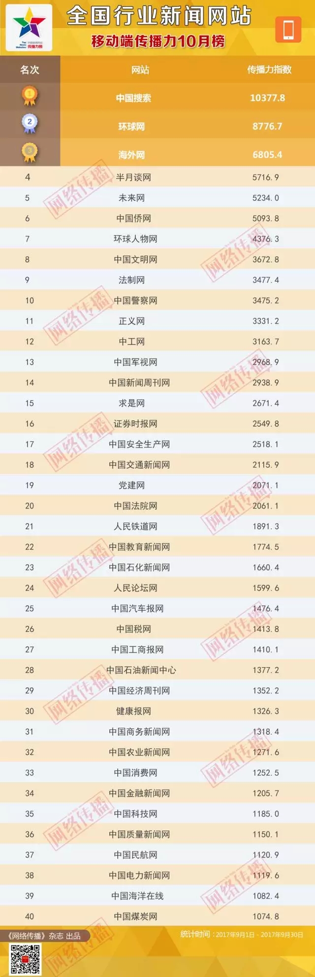 全國行業新聞網站傳播力2017年10月榜
