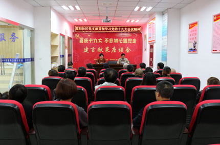 蘇陽社區在十九大召開之后緊靠時代熱點,學習會議精神,陸續開展了一系列學習交流活動讓大家更加深刻了解十九大的精神含義以及知識,補足共產黨員精神上的“鈣”,高揚信念之“帆”,更好的發揮基層黨組織的作用,讓社區居民真正感知十九大報告帶來新變化、新思想、新目標和新征程。(陳馨)