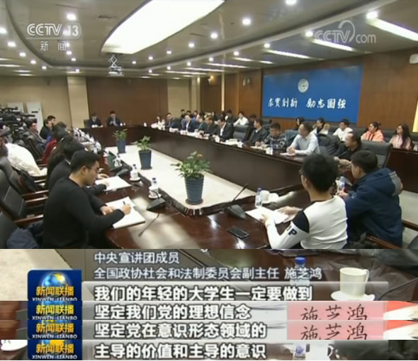 在吉林大學,中央宣講團成員、全國政協社會和法制委員會副主任施芝鴻理論聯系實際為師生們宣講。