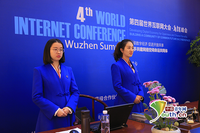 12月2日,第四屆世界互聯網大會志愿者“小梧桐”在會場服務。中國青年網記者 宋繼祥 攝