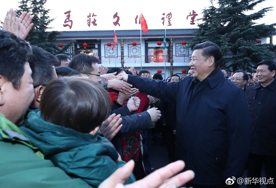12日下午,正在徐州考察的習近平總書記走進馬莊村黨員活動室,與正在學習黨的十九大精神的黨員們親切交流。習近平說,剛才在村史館看到你們村班子很穩定,說明村干部獲得了村民的支持。農村要發展好,很重要的一點就是要有好班子和好帶頭人,希望大家在十九大精神指引下把村兩委班子建設得更強。