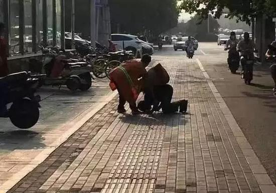 毫不猶豫將自己帶的雞蛋早餐給盲人乞討者吃