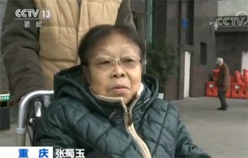 張蜀玉:我左腳不方便,摔了是左腳受的傷,我右腳上來后,她就把我的左腳抬上來,然后就幫我把輪椅放到后面。