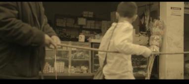 失落至極的趙亮無助坐在街邊吃面包,看到路邊有人擦鞋,便又想起自己和眼盲的爺爺擦鞋賺錢相依為命的日子。