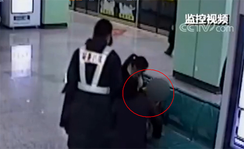 監控畫面顯示,這名5歲男童因為突發驚厥暈倒在上海地鐵12號線漕寶路站,地鐵工作人員和執勤民警立即趕來查看。