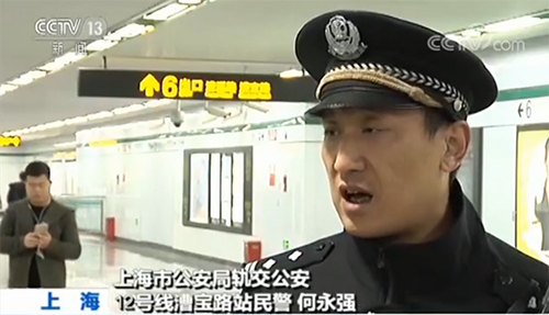 上海市公安局軌交公安12號線漕寶路站民警何永強說,當時孩子渾身抽筋,咬破了舌頭,嘴里在出血,然后我們地鐵站值班站長為了防止再次傷害,在他嘴里放了一支筆。