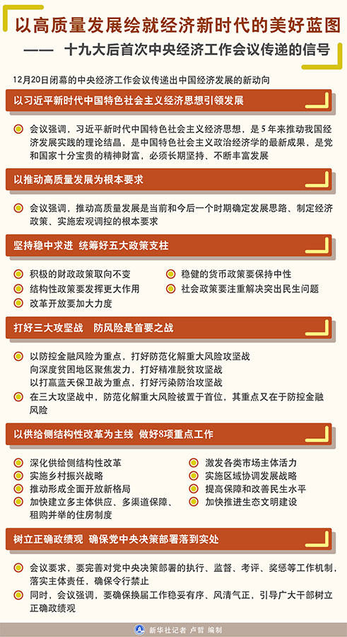 新華社北京12月20日電 題:以高質量發展繪就經濟發展新時代的美好藍圖——十九大后首次中央經濟工作會議傳遞的信號