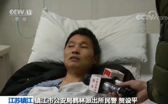 央視網消息:近日,江蘇省鎮江市公安局鶴林派出所50歲的民警賀設平,在抓捕過程中,與持刀的犯罪嫌疑人展開了殊死搏斗,身中四刀,肺部被刺穿。但在身負重傷的情況下,這位民警仍然繼續追擊。