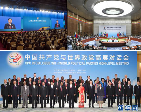 我們在國內(nèi)主辦了幾場多邊外交活動,包括:首屆“一帶一路”國際合作高峰論壇,金磚國家領(lǐng)導(dǎo)人廈門會晤,中國共產(chǎn)黨與世界政黨高層對話會等會議。