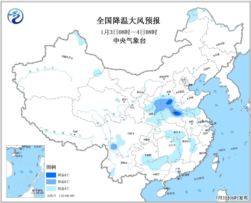 張濤:此次過程降溫幅度明顯,整個雨雪影響區域都會出現4~6℃的降溫,其中,陜西、河南、湖北西部、山西、甘肅東南部將降溫6~8℃,局地降溫可達10℃。湖北、河南等地還會有4~5級偏北風。