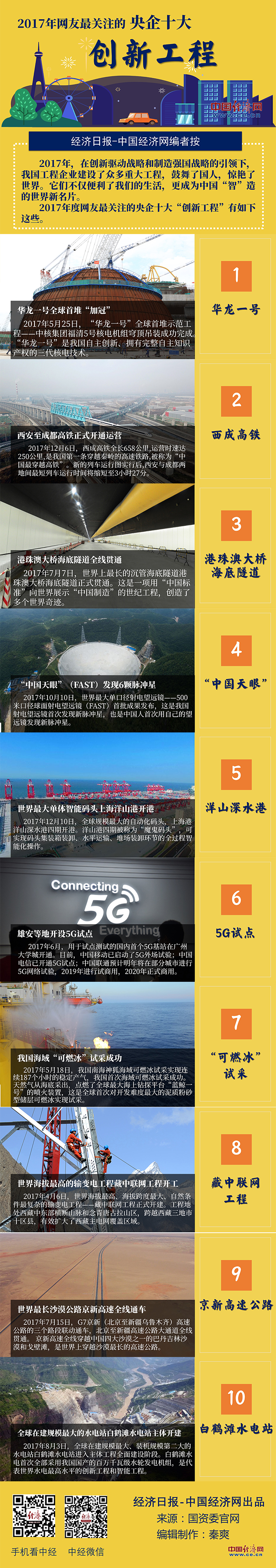 2017年度網友最關注的央企十大“創新工程”有如下這些。