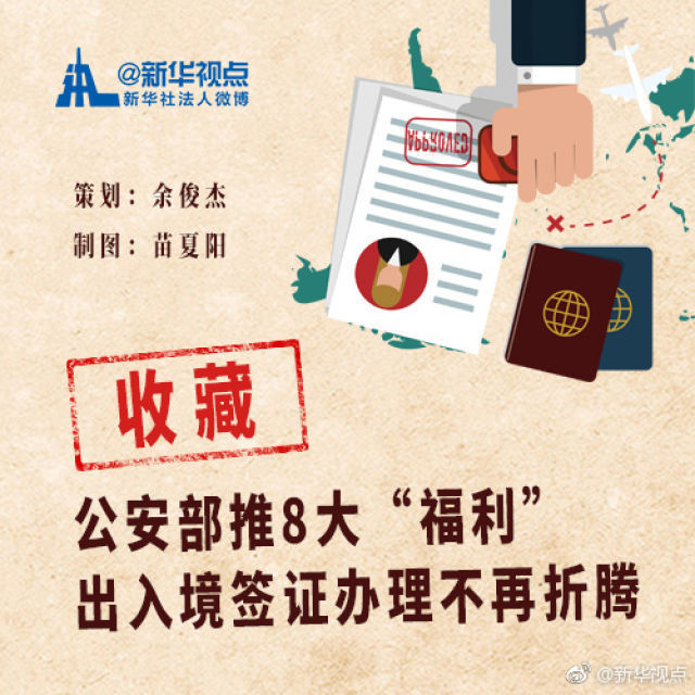 新華網(wǎng)北京1月23日電 公安部將于2月1日起施行8大便民舉措,對(duì)于出入境的小伙伴們來(lái)說(shuō),不但能簡(jiǎn)化手續(xù),還可以節(jié)省開支。看看都有哪些福利!(記者余俊杰 據(jù)新華社“新華視點(diǎn)”微博報(bào)道)