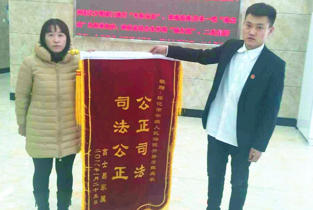 高士昌的妻子給綏化市中級(jí)人民法院贈(zèng)送錦旗
