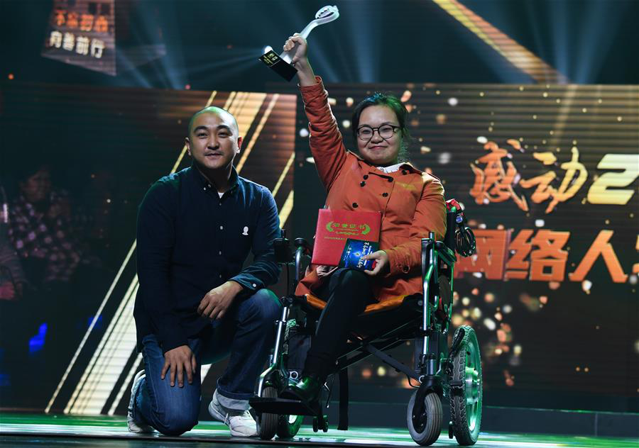 2018年1月,杜誠誠入選新華社“中國網(wǎng)事·感動2017”年度網(wǎng)絡(luò)人物,上臺領(lǐng)獎。圖片來自網(wǎng)絡(luò)