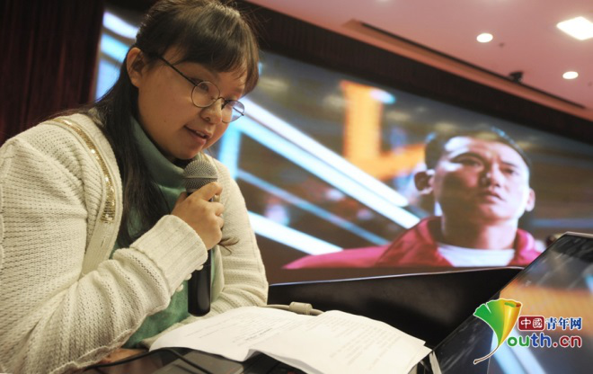 2015年,杜誠誠做客市民大講堂座談會,講述自己為盲人講電影的心路歷程。本人供圖