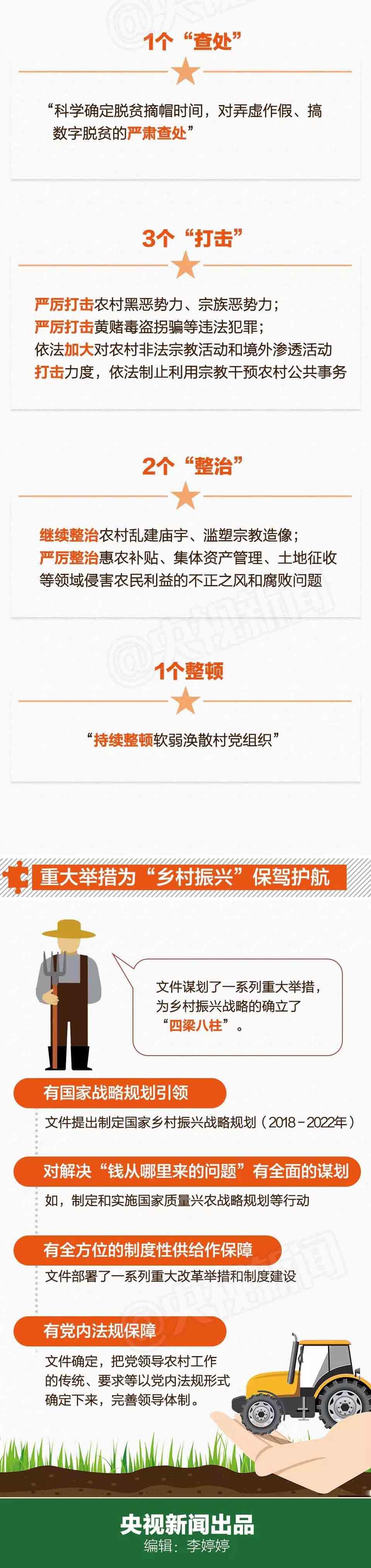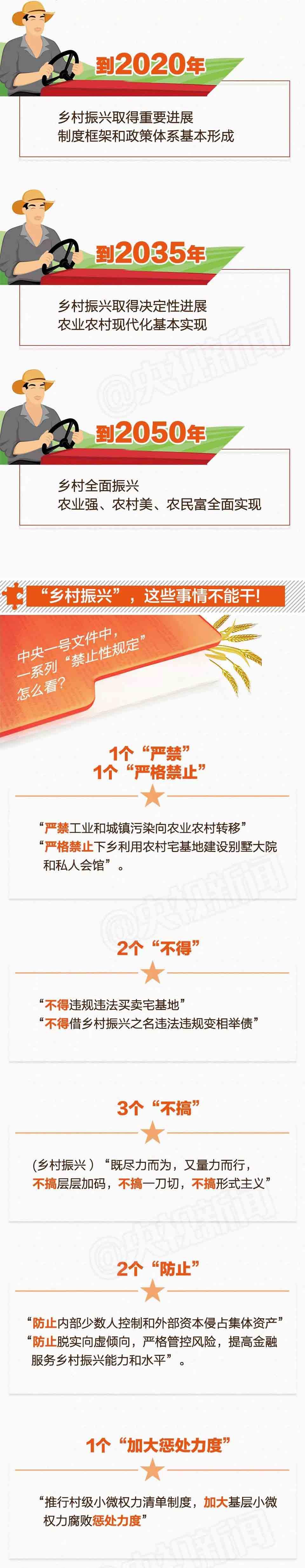 《意見》是對(duì)十九大“鄉(xiāng)村振興”這個(gè)全新提法的系統(tǒng)性表述。什么叫“鄉(xiāng)村振興”?怎么干?要達(dá)到何種目標(biāo)?什么樣的標(biāo)準(zhǔn)才稱得上“鄉(xiāng)村振興”?此外,這份文件中還有一系列“禁止性規(guī)定”,哪些事情不能干,哪些是被禁止的,哪些會(huì)被嚴(yán)厲處罰?一圖讀懂↓