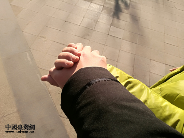 與媽媽牽手。(中國臺灣網 尹賽楠 攝)