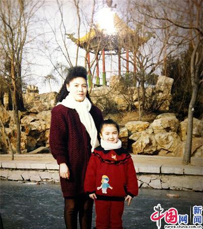 1997年春節(jié),董月婷與媽媽在公園合影。受訪者供圖