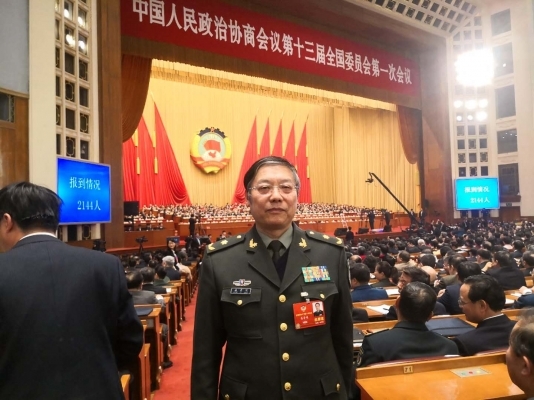 軍隊政協委員、國防大學軍民融合發展研究中心教授姜魯鳴在中國人民政治協商會議第十三屆全國委員會第一次會議現場