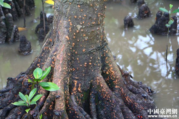 紅樹林樹上“會呼吸的孔”。(中國臺灣網 盧佳靜 攝)
