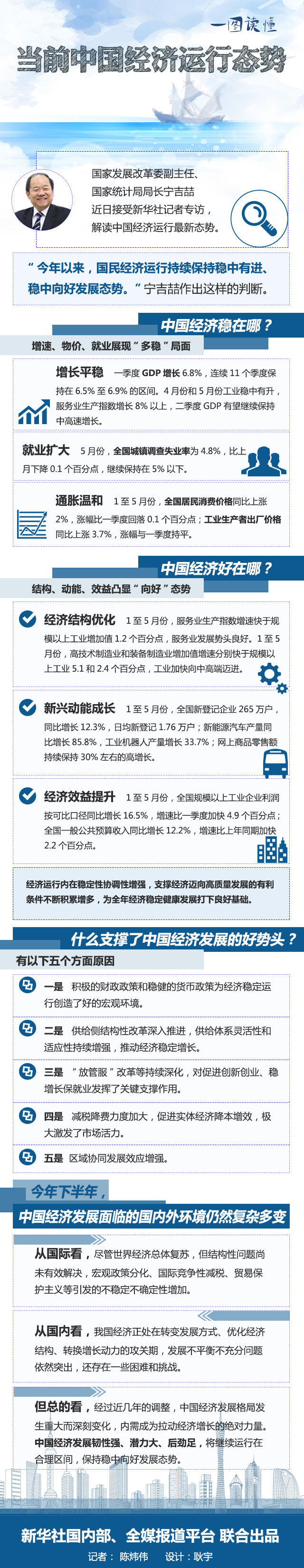 【一圖讀懂|當前中國經濟運行態勢】行至年中,中國經濟“半年報”即將披露。在復雜的國內外經濟形勢下,中國經濟增長是否穩健?結構能否優化?質量能否提升?風險如何防范?國家發展改革委副主任、國家統計局局長寧吉喆解讀中國經濟運行最新態勢。戳圖了解