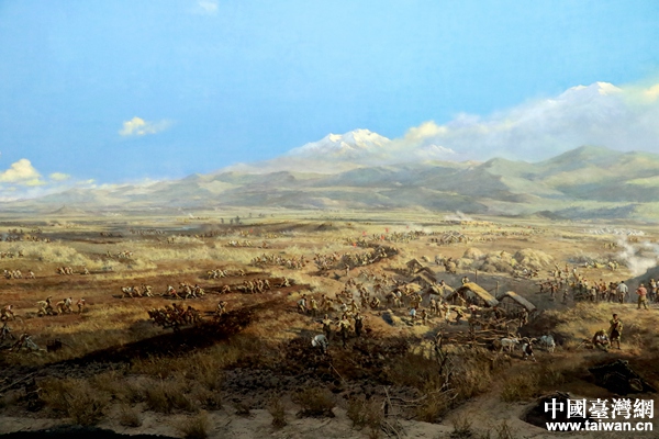 巨幅半景畫《屯墾戍邊》吸引記者們駐足圍觀。(中國臺灣網 尹賽楠 攝)