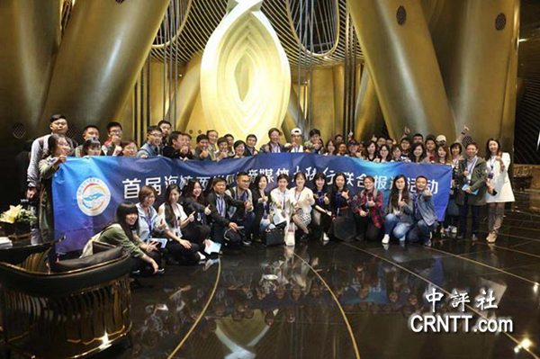 兩岸新媒體在“上海之巔”合影留念。(圖片來(lái)源:中評(píng)社)