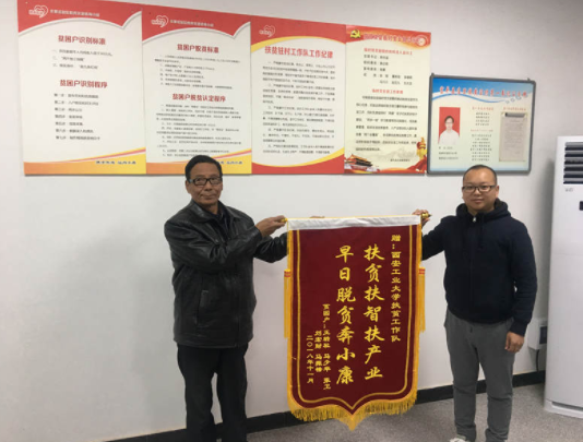 馬振鋒給西安工業大學扶貧工作隊贈送錦旗。