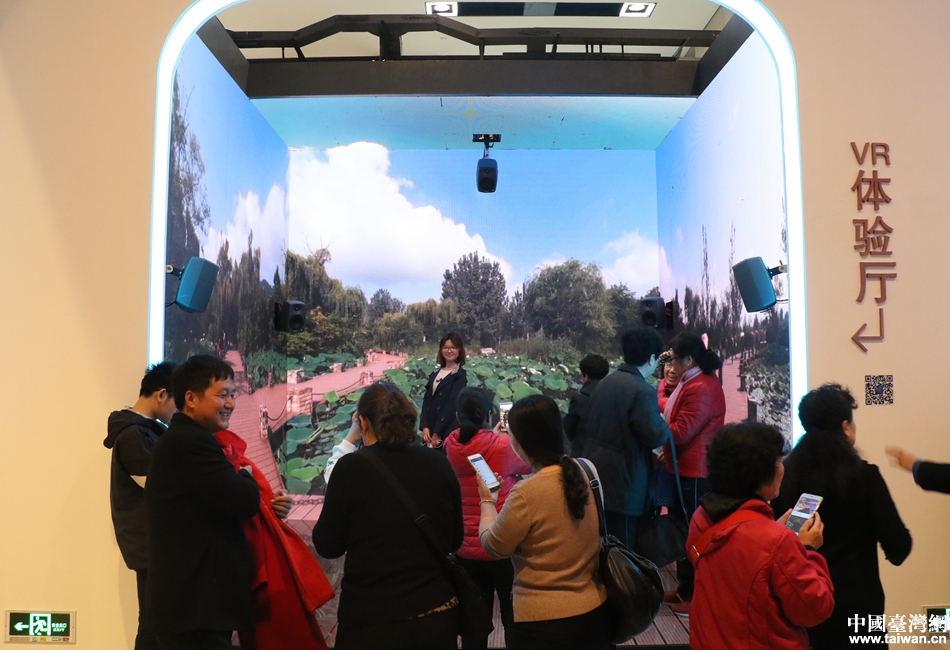 11月14日,觀眾在“壯美篇章”區(qū)進行VR體驗。(中國臺灣網(wǎng) 張亞靜 攝)