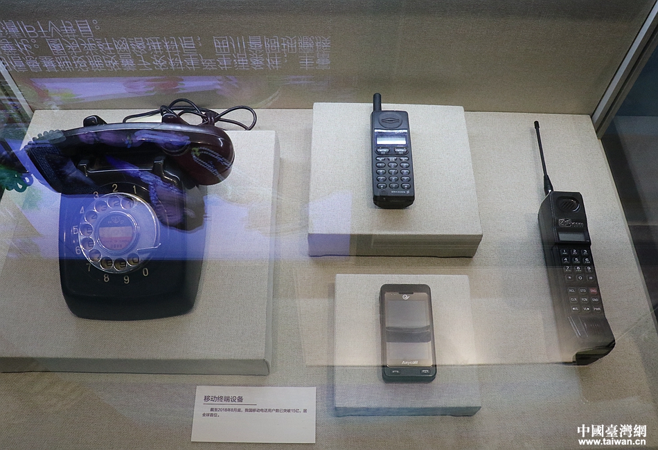 改革開放40年來,我國基礎(chǔ)設(shè)施建設(shè)取得歷史性成就,適度超前、統(tǒng)籌銜接的一體化現(xiàn)代基礎(chǔ)設(shè)施網(wǎng)絡(luò)初步建成。“偉大的變革——慶祝改革開放40周年大型展覽”——“大國氣象”展區(qū)展示有不同時期的移動終端設(shè)備。(中國臺灣網(wǎng) 張亞靜 攝)
