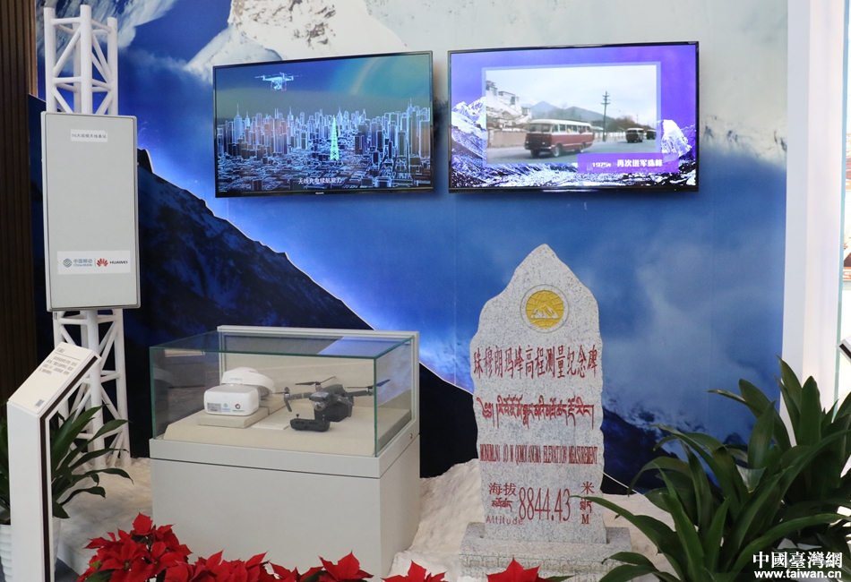改革開放40年來,我國基礎(chǔ)設(shè)施建設(shè)取得歷史性成就,適度超前、統(tǒng)籌銜接的一體化現(xiàn)代基礎(chǔ)設(shè)施網(wǎng)絡(luò)初步建成。“偉大的變革——慶祝改革開放40周年大型展覽”——“大國氣象”展區(qū)展示珠穆朗瑪峰測量紀念碑。(中國臺灣網(wǎng) 張亞靜 攝)
