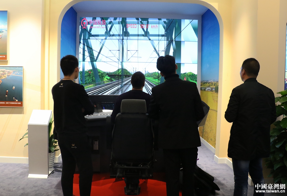 改革開放40年來,我國基礎(chǔ)設(shè)施建設(shè)取得歷史性成就,適度超前、統(tǒng)籌銜接的一體化現(xiàn)代基礎(chǔ)設(shè)施網(wǎng)絡(luò)初步建成。觀眾在“大國氣象”展區(qū)現(xiàn)場體驗駕駛高鐵。(中國臺灣網(wǎng) 張亞靜 攝)