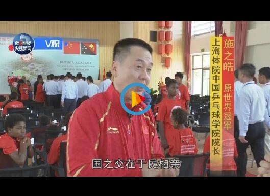 在學校的多功能廳內,上海體育學院所屬的中國乒乓球學院巴布亞新幾內亞訓練中心的中國教練員、前世界冠軍施之皓和奧運冠軍張怡寧正在訓練巴新運動員。兩國領導人同他們親切交流。習近平鼓勵他們爭創佳績,做兩國人民友好使者。